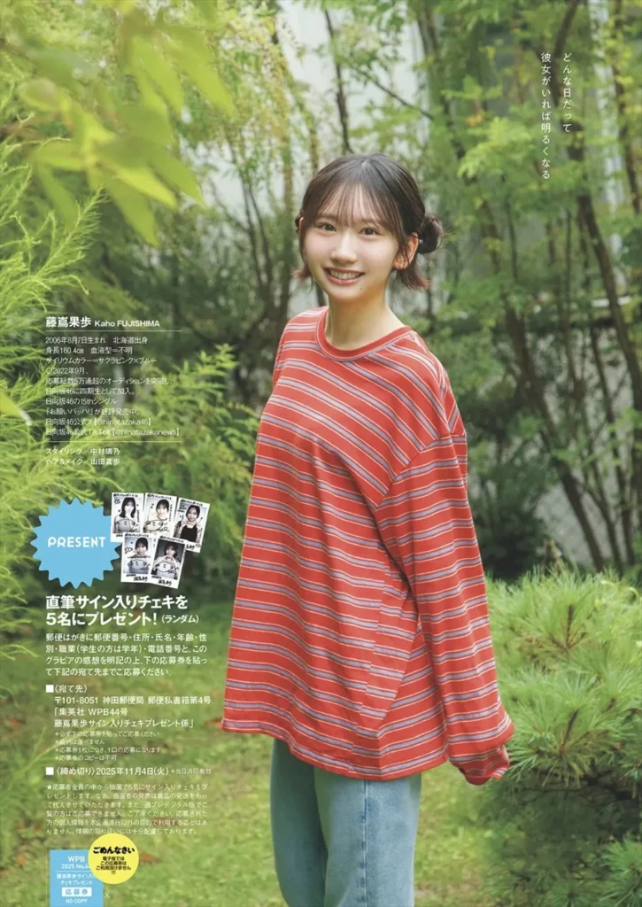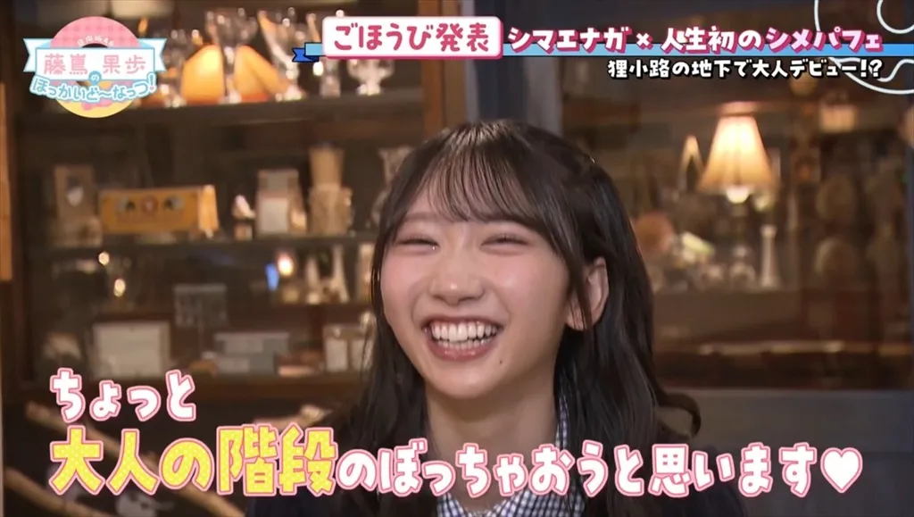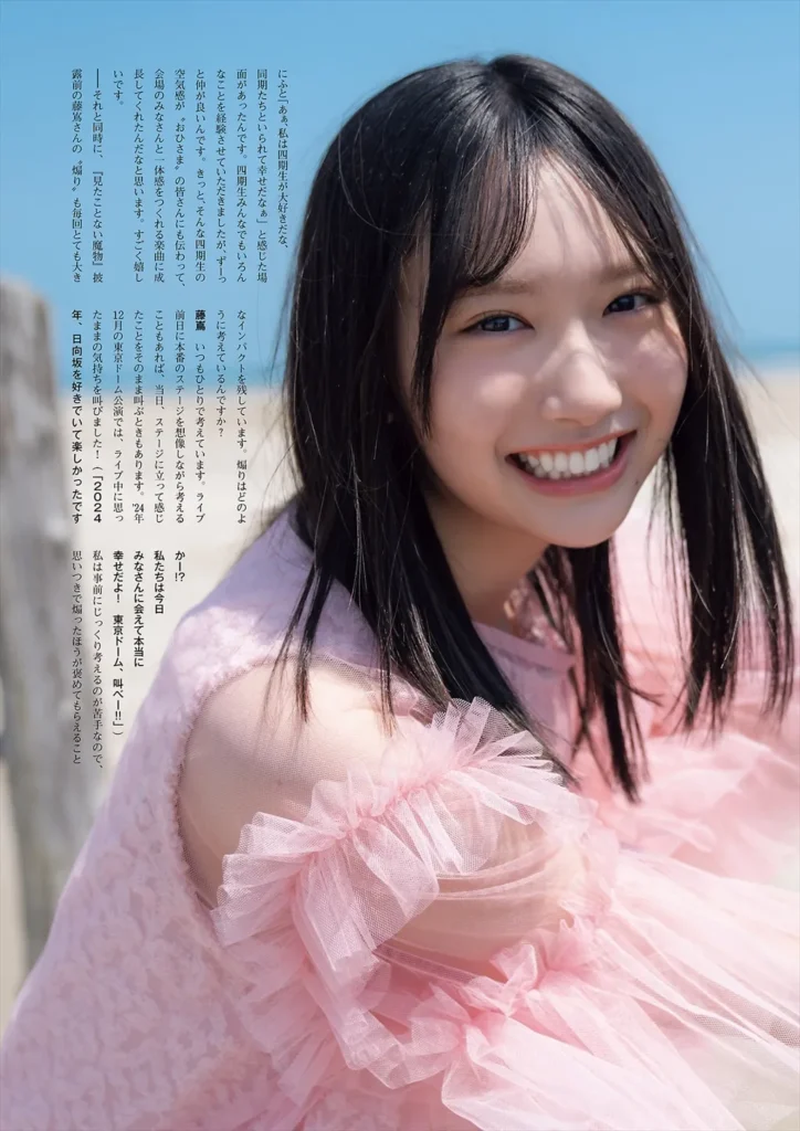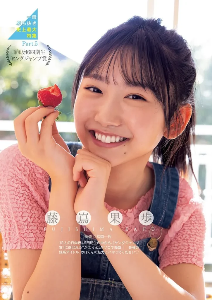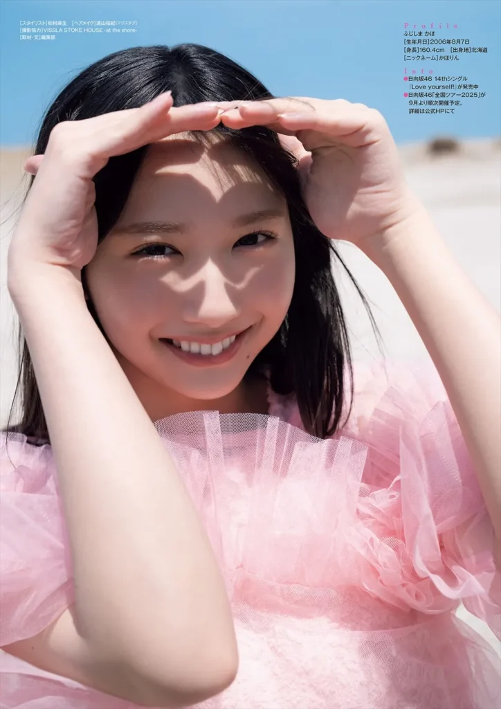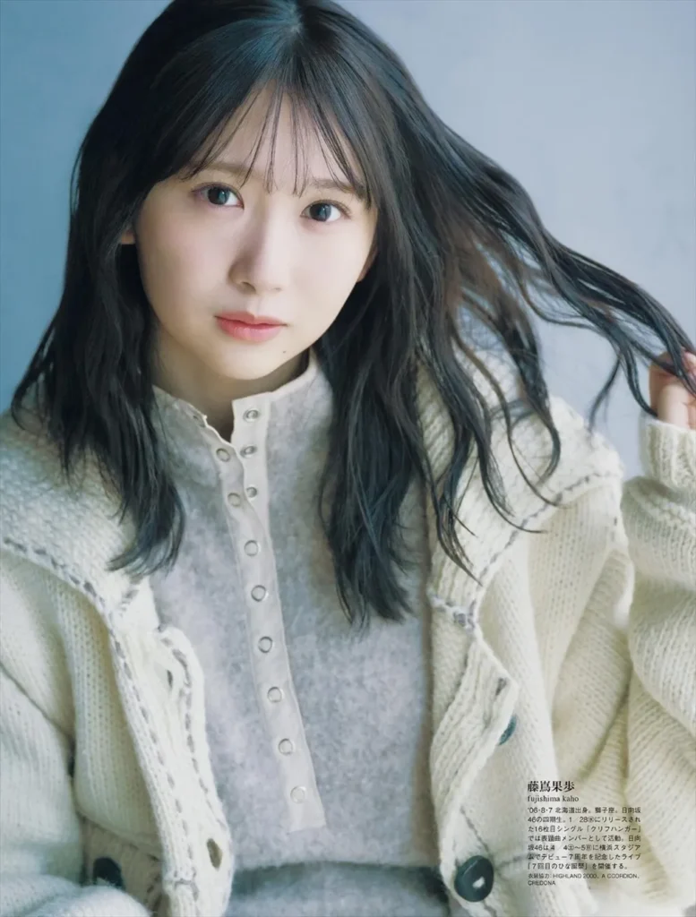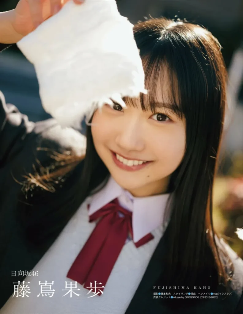藤島果歩は日向坂46の4期生。12thシングル『絶対的第六感』で正源司陽子とともに表題曲センターに抜擢。