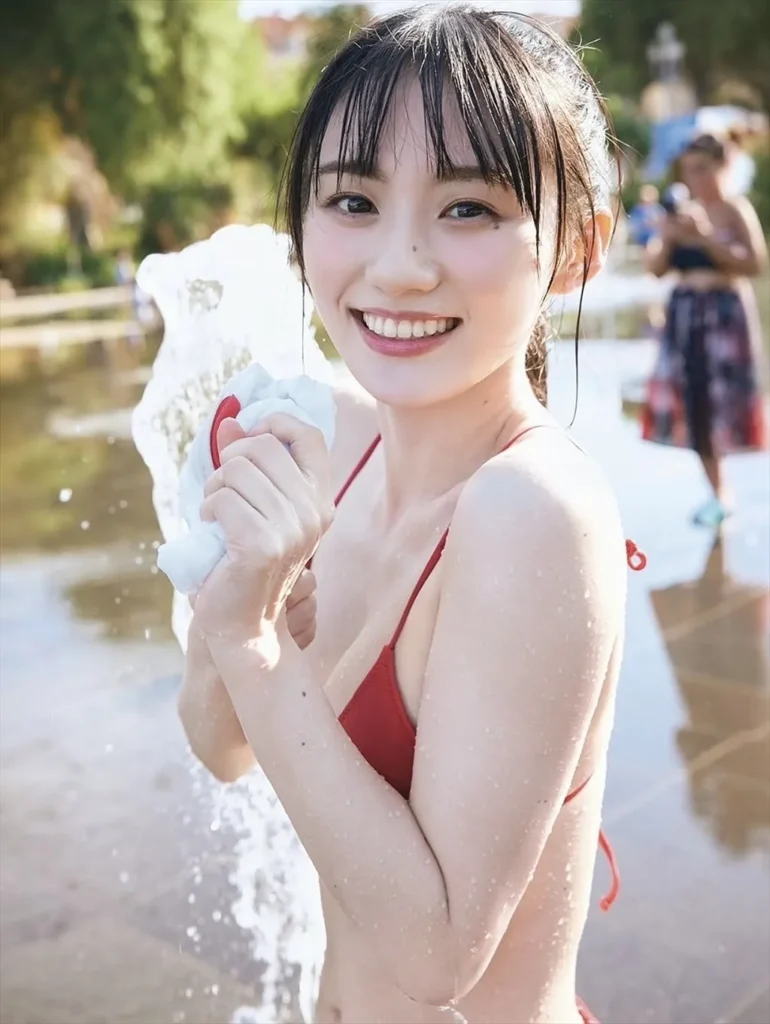 ファースト写真集『エチュード』で解禁されたビキニ水着姿です。清楚で爽やかな笑顔と、意外と大きい美乳おっぱいの谷間がエロいです!