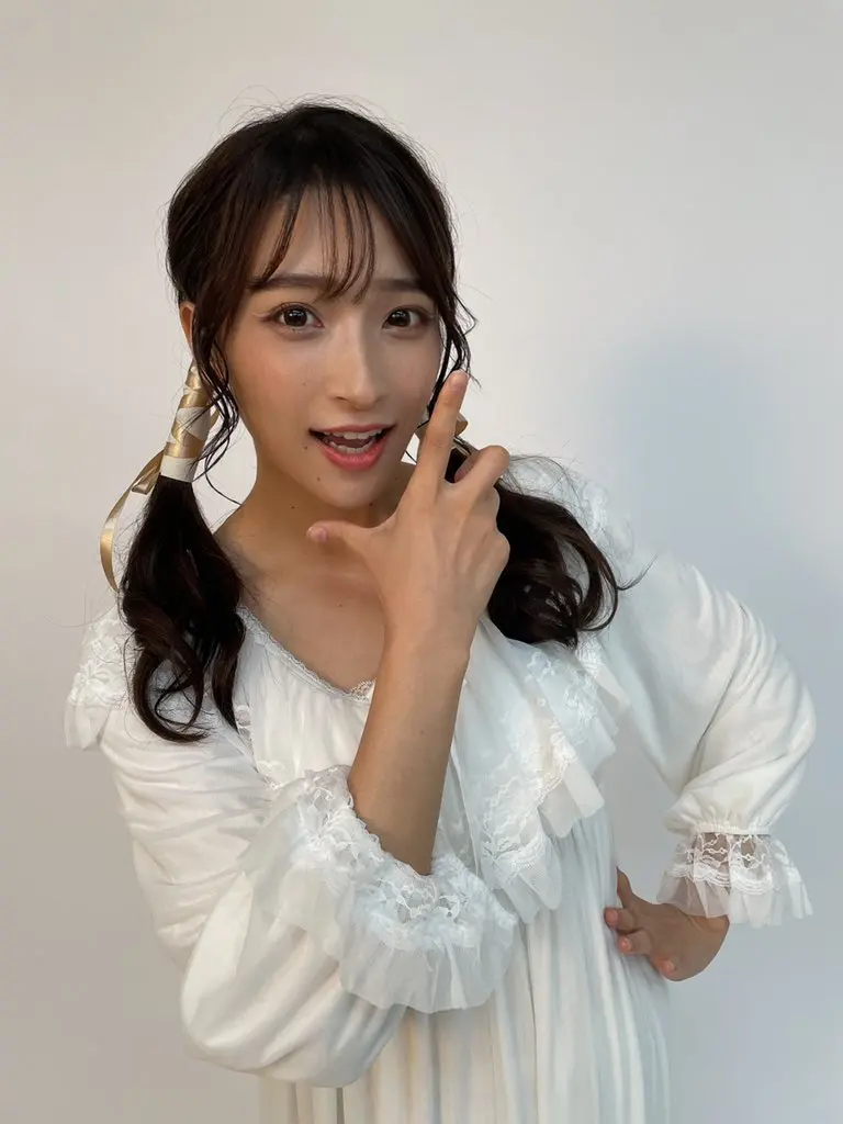 デジタル写真集で見せてくれた、エッチなランジェリー下着姿です。人前でブラジャーとパンティを晒して、少し緊張気味の二瓶ちゃんが可愛すぎます。